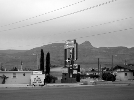 Ein gutes Beispiel dafür war eine Begegnung in meinem kleinen Motel am Ausgang der Stadt. Das Grundstück war umarmt vom Interstate 70 und den Gleisen der Southern Pacific Railroad. In den frühen Morgenstunden wurde ich regelmäßig abgeholt von einem Mitarbeiter der Abteilung Public Affairs der Luftwaffe. Er unterstützte mich bei meiner Arbeit zu meinem Fotoprojekt auf der Holloman Air Force Base. Diese wiederum lag auf halber Strecke zu den ausgedehnten Gipssanddünen der White Sands .