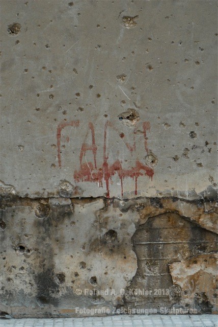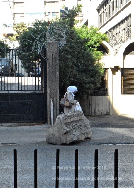 Der Sonntag versprach eine Visite ins UN-Hauptquartier in Naquora an der libanesisch-israelischen Grenze. Ein anderthalbstündiger heisser Ritt. Zwischenzeitlich hatten wir die Mitteilung erhalten, dass die Strecke als "unsafe" eingestuft wurde. Flankiert von Fahnen der Hisbollah und heroischen Transparenten von im Kampf gefallenen Märtyrern raste unser Fahrer die Küstenstrasse gen Süden. Im Flug passierten wir von libanesischem Militär bewachte Palästinenserlager. No Pictures. Einmal auf UN-Gelände angekommen schien alles friedlich. Die geparkten weissen Einsatzfahrzeuge mit Maschinengewehren bestückt, sprachen jedoch eine andere Sprache. Auch hier bekamen wir von deutschen Offizieren ein aufschlussreiches Briefing. Draussen lagen schlafende Hunde vor Panzern in der Sonne.